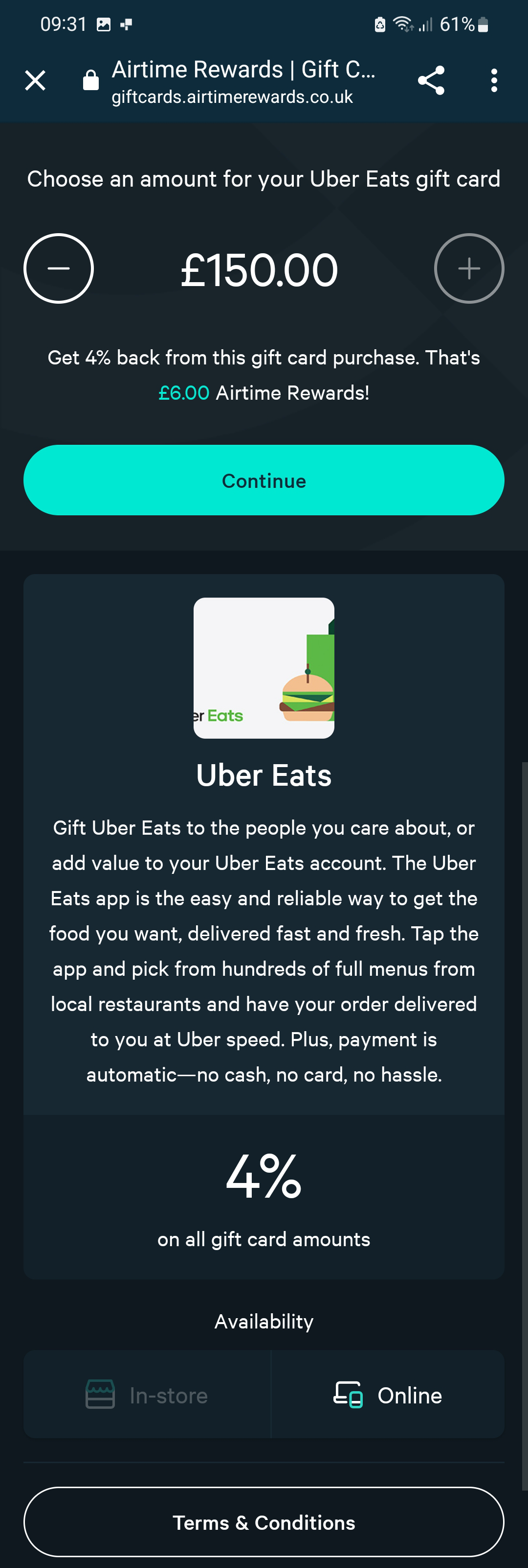 The way this discount works is that you will purchase an Uber Eats gift card through the Airtime Rewards mobile app. Airtime Rewards will then give you a 4% cashback reward on your purchase which will be credited to your account. Please note you must make the purchase using your linked bank card so that it can be tracked.